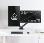 The dual monitor gas spring arm is a premium and heavy duty monitor stand which is made up of high grade steel, this rugged mount is built to resist scratches and supports screens up to 15 kg and 35″ inches in size per arm. The monitor stand has a detachable VESA panel, just simply screw the monitor on the panel and slide back to the mount.