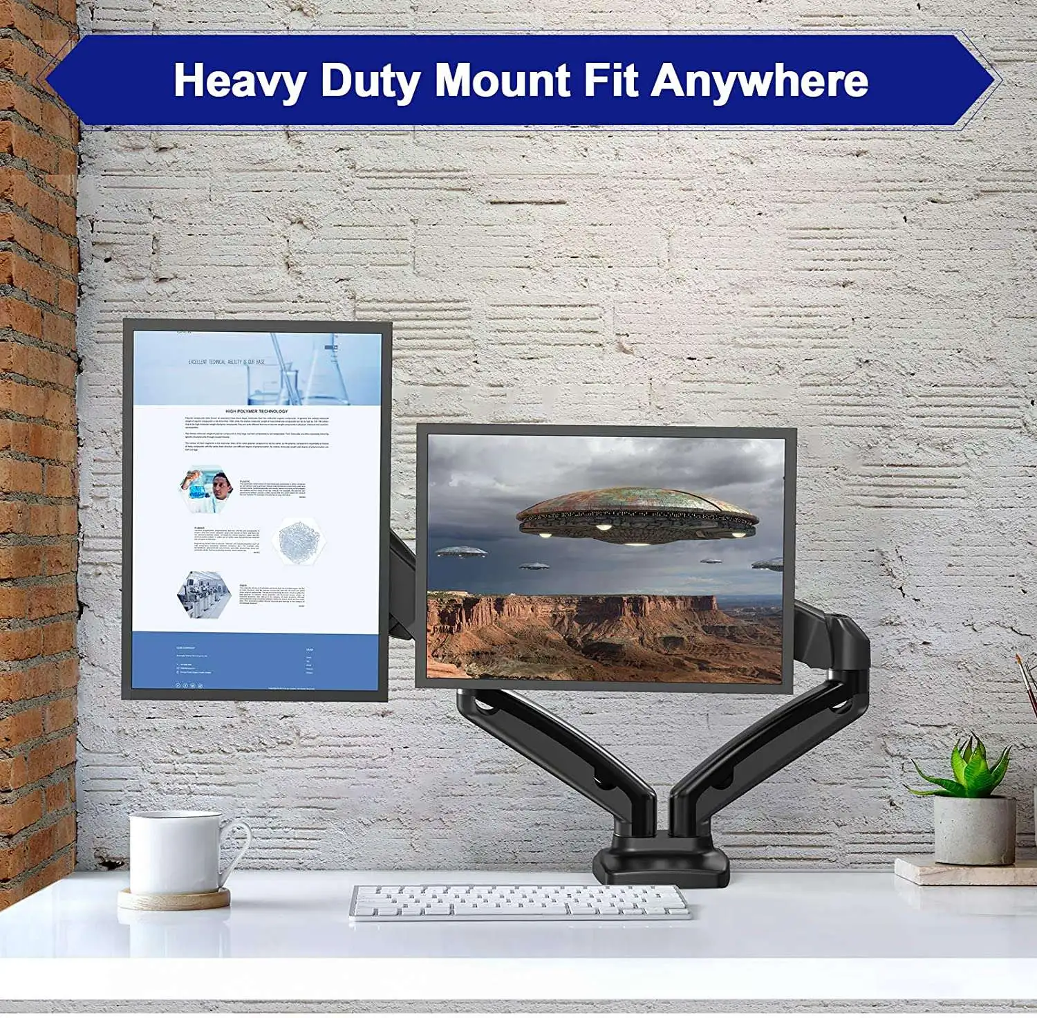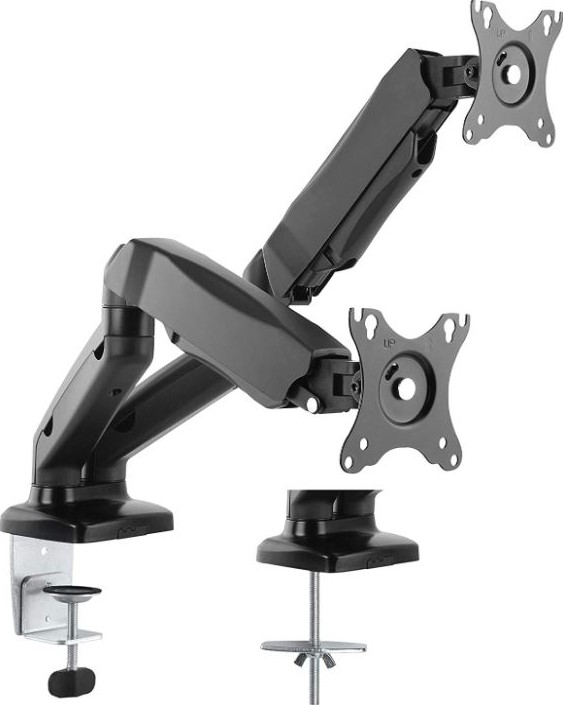 ULTIMA M25d Gas Spring dual Monitor Stand for 13-32 inch Screens, 360° Swivel, Adjustable Height, ± 45° Tilt, VESA 75×75/100x100mm, C-Clamp & Grommet Installation