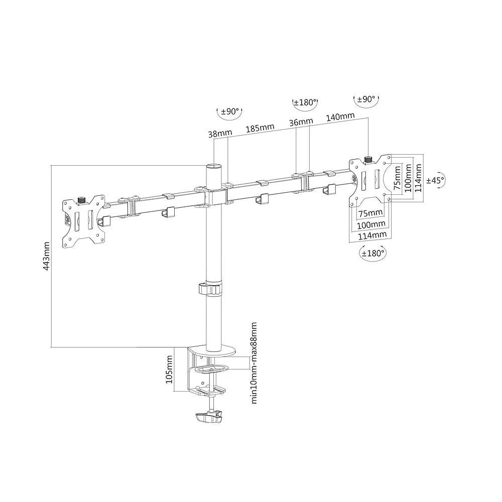 Dual Screen Mount for 13″ to 32″ Monitors: Designed to support two LED/LCD screens ranging from 13″ to 32″ each, ideal for multitasking workstations, trading desks, editing studios, and gaming setups.