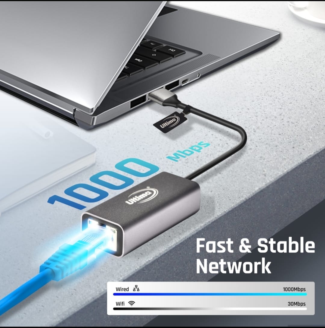 Experience seamless gigabit Ethernet connectivity with the ULTIMA Type-C to LAN 3.0 adapter. Enjoy superior performance and reliable data transfer, built with ULTIMA’s commitment to premium quality and durability.