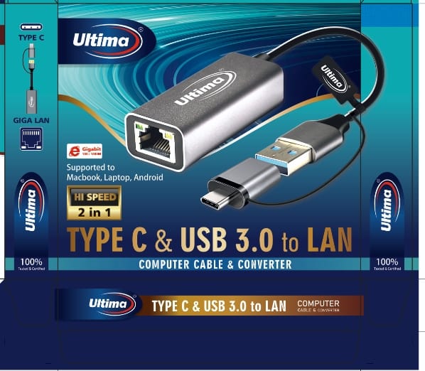Experience seamless wired networking with the ULTIMA USB & C to LAN 3.0 Adapter. This high-performance adapter delivers reliable Gigabit Ethernet speeds, ensuring a stable and fast connection for your devices.