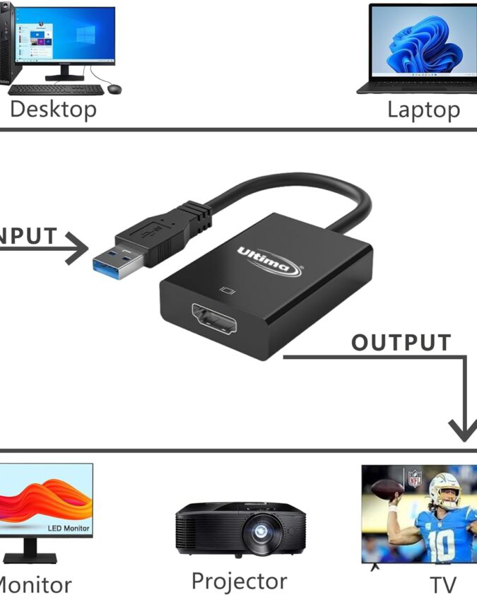 Transform USB 3.0 Port into HDMI Output Instantly: Easily connect your USB 3.0-enabled desktop or laptop to an HDMI monitor, TV, or projector, enabling extended display or mirror mode — perfect for presentations, multitasking, or home entertainment.